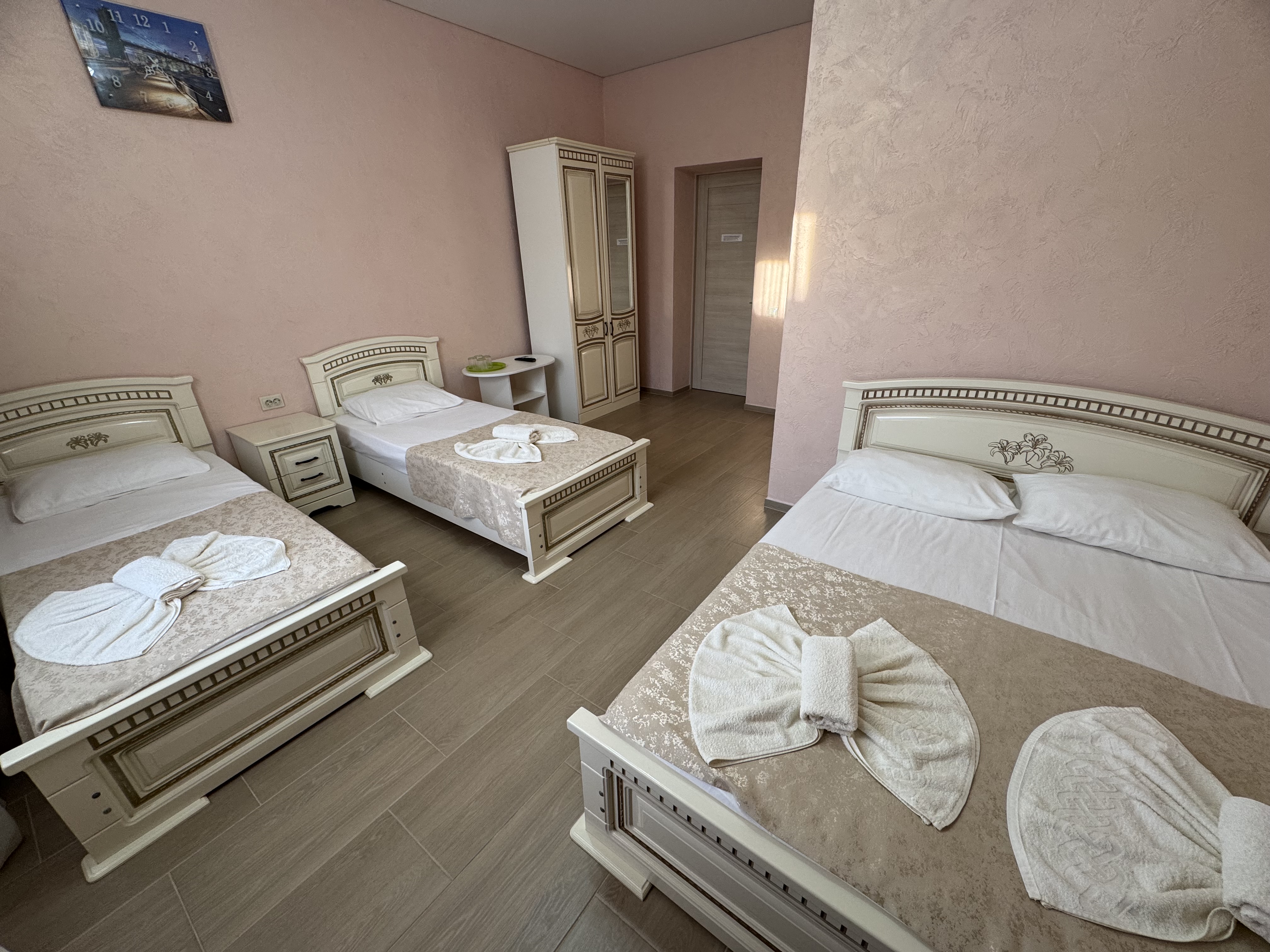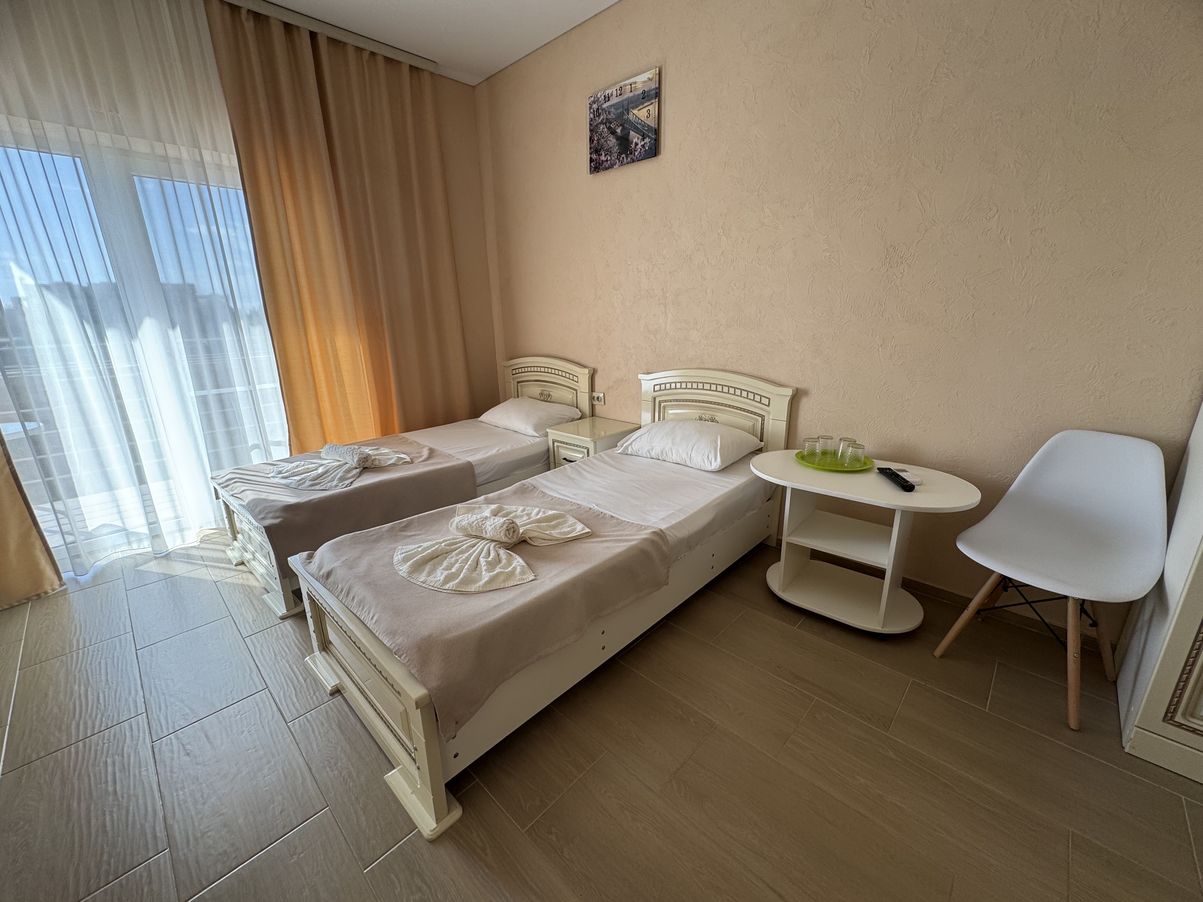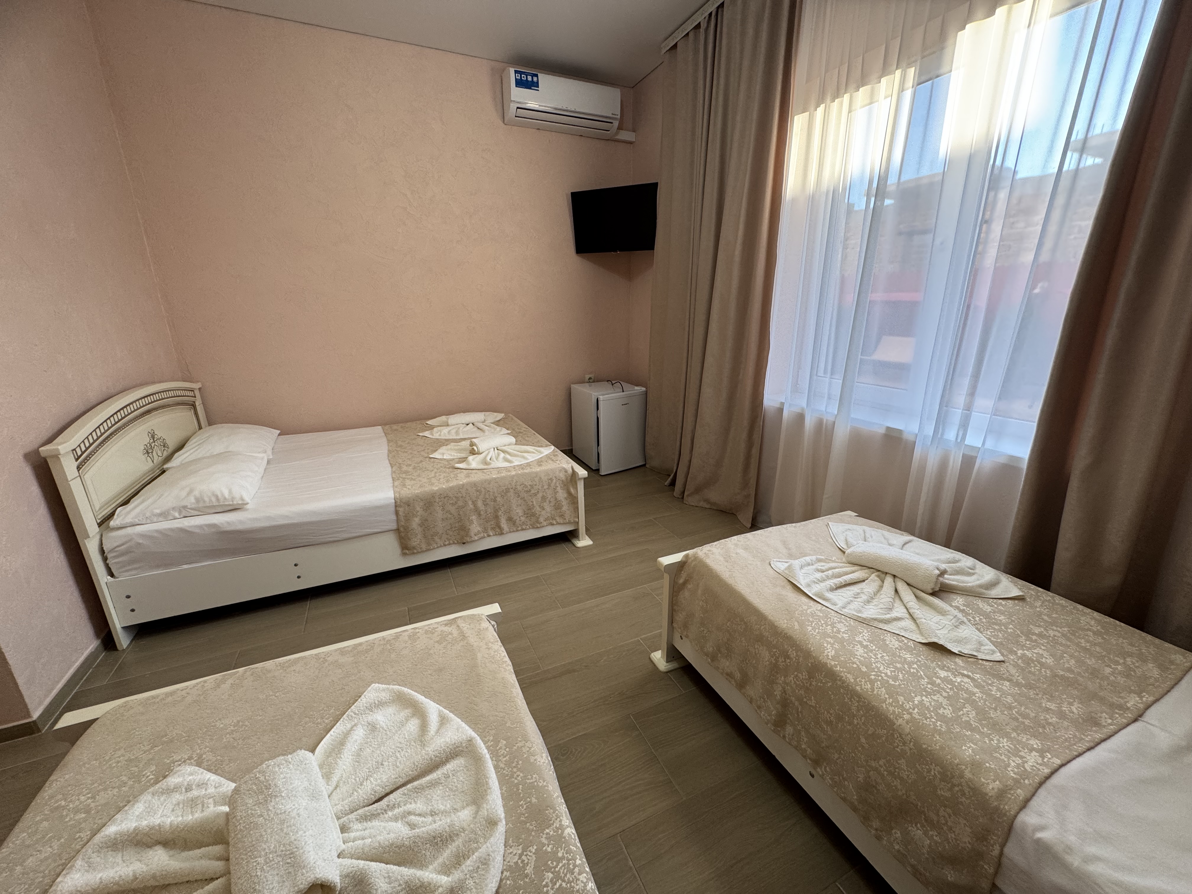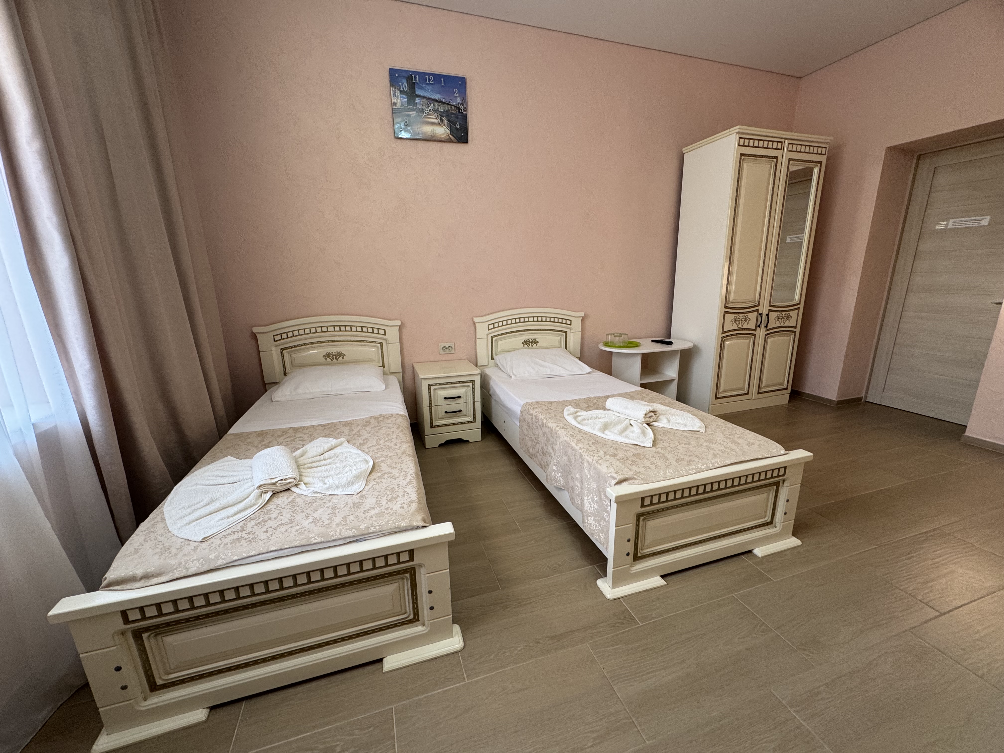 Номер на 1 этаже без балкона 23 кв м. Оборудование: телевизор, спутниковое, цифровое тв, холодильник, кондиционер, фен, средства личной гигиены Удобства: туалет и душ в номере, санузел совмещенный Смена полотенец 1 раз в 4 дня( по запросу ), уборка номера со сменой постельного белья и полотенец 1 раз в 8 дней