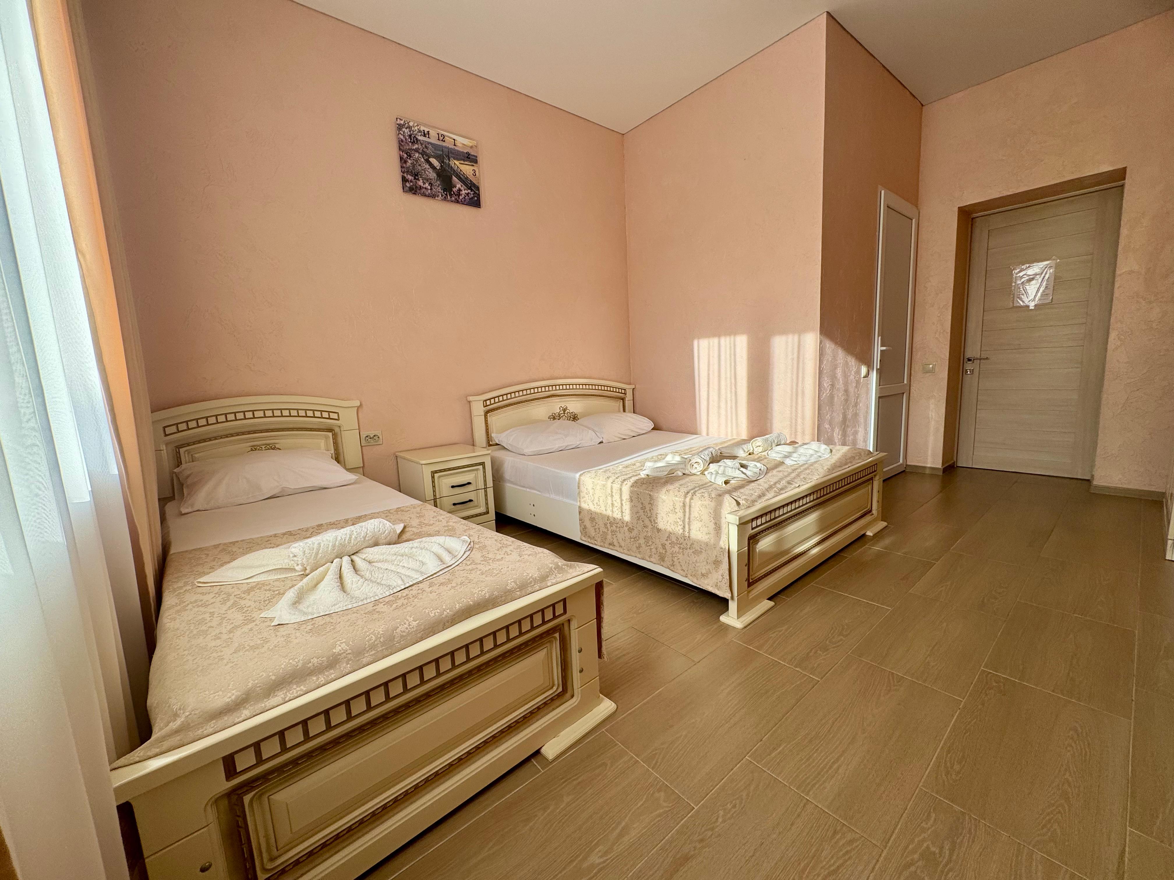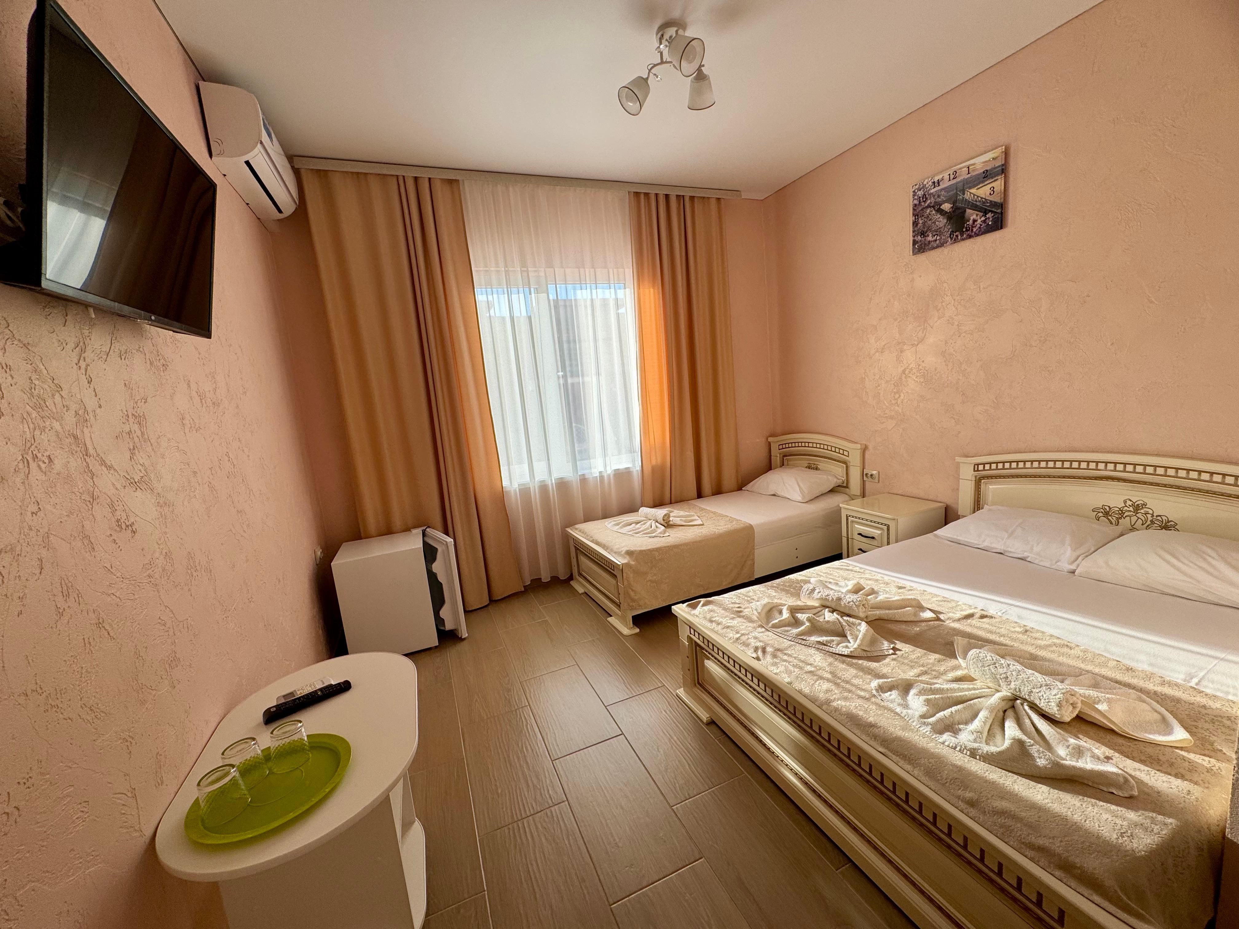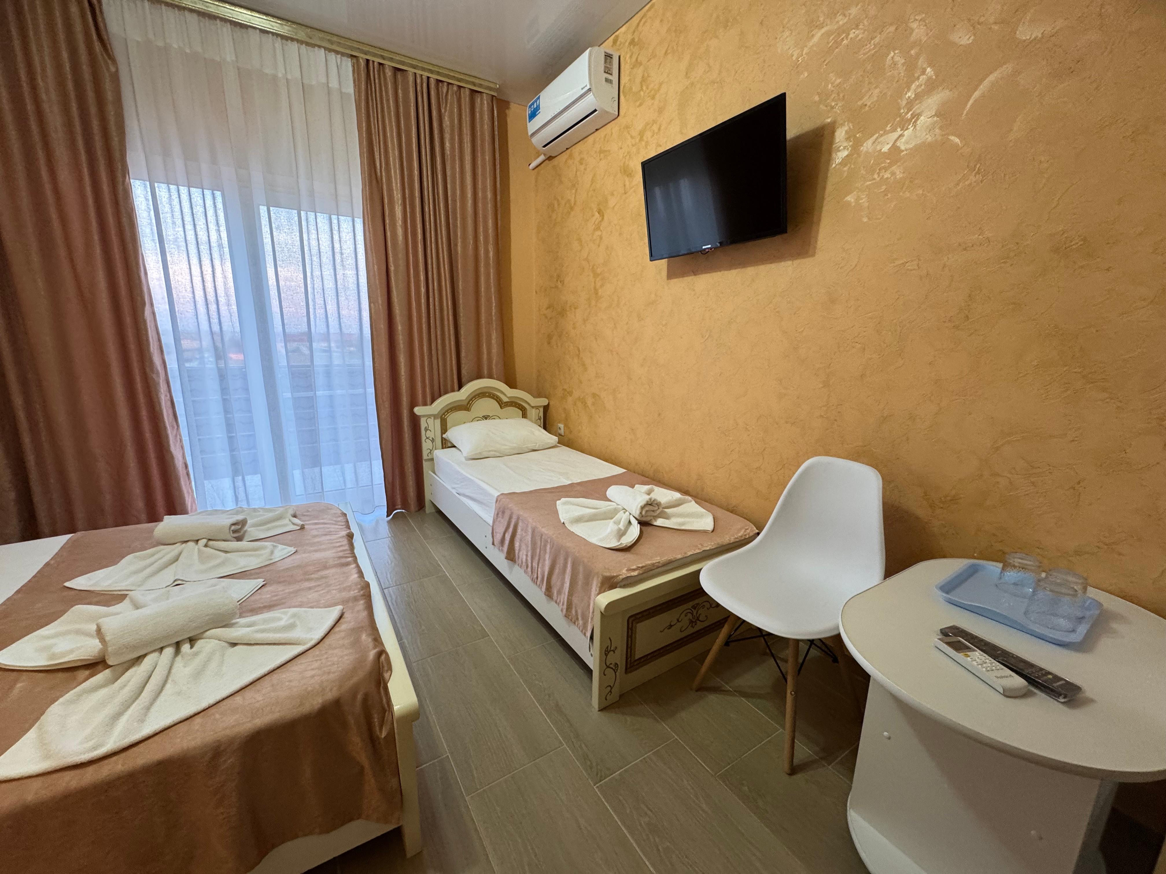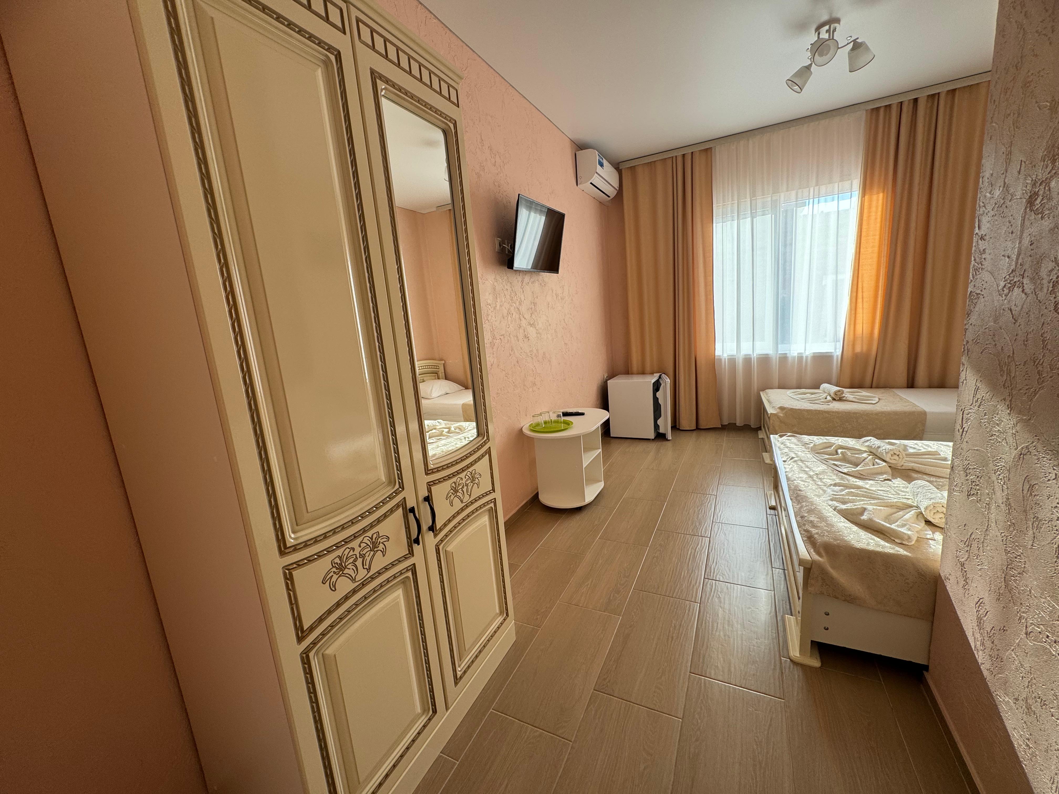 Номер на 1 этаже без балкона 21 кв м. Номера имеют разную планировку мебели. Оборудование: телевизор, спутниковое, цифровое тв, холодильник, кондиционер, фен, средства личной гигиены Удобства: туалет и душ в номере, санузел совмещенный Смена полотенец 1 раз в 4 дня( по запросу ), уборка номера со сменой постельного белья и полотенец 1 раз в 8 дней